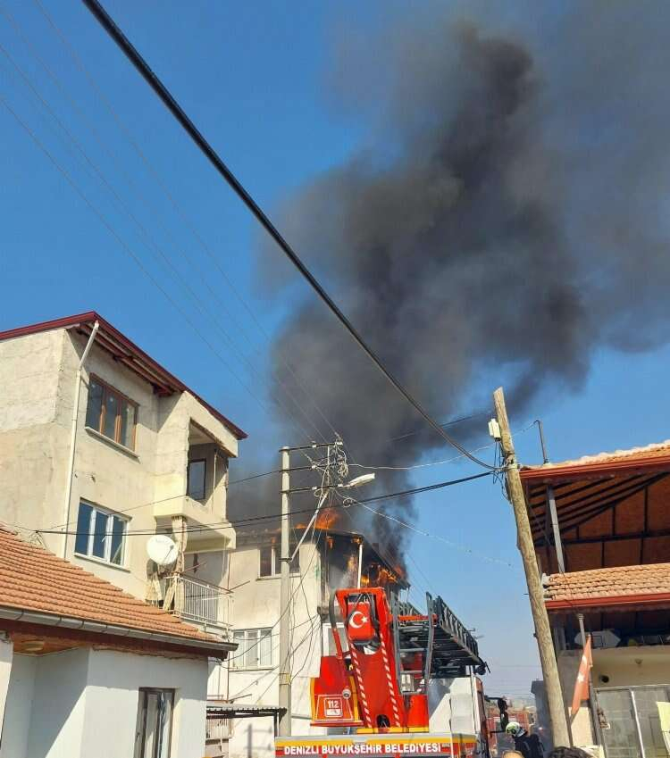 Denizli’de 3 katlı evin depo olarak kullanılan çatı katında çıkan yangın paniğe neden oldu. Kaynak yaptıktan sonra Cuma namazına için camiye giden ev sahibi döndüğünde evini yanar halde buldu.