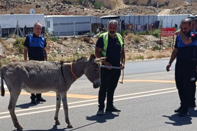 Hatay’da ana yola çıkarak trafikte tehlike yaratan sahipsiz eşek, zabıta ekipleri tarafından yakalanıp hayvan bakım ve rehabilitasyon merkezine teslim edildi.
