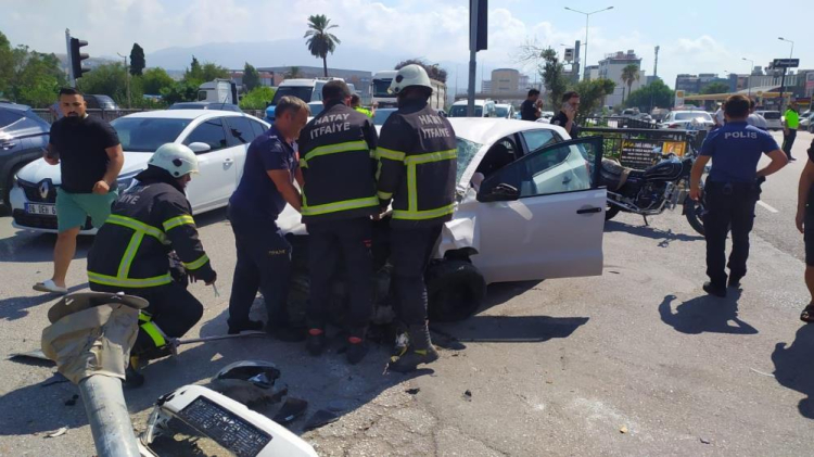 Edinilen bilgilere göre kaza, İskenderun ilçesi kent merkezinde yaşandu. İ.D'nin kullandığı 31 Z 6540 plakalı otomobil, İbrahim Karaoğlanoğlu Caddesi'nde M.T. idaresindeki 31 ARL 971 plakalı motosiklet ve H.G'nin sürdüğü bisiklete çarptı. Kontrolden çıkan otomobil, sinyalizasyon direğine çarparak durabildi. İhbar üzerine kaza yerine 112 Acil Sağlık, polis ve itfaiye ekipleri sevk edildi. Yaralanan M.T. ve H.G, sağlık ekibince İskenderun Devlet Hastanesine kaldırıldı.