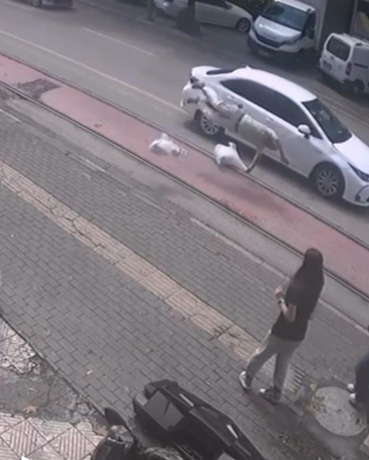 Bursa'nın Osmangazi ilçesinde market alışverişinden çıkan yaşlı adam, yolun karşısına geçerken otomobilin çarpması sonucu yaralandı. Kaza anı kameraya yansıdı.