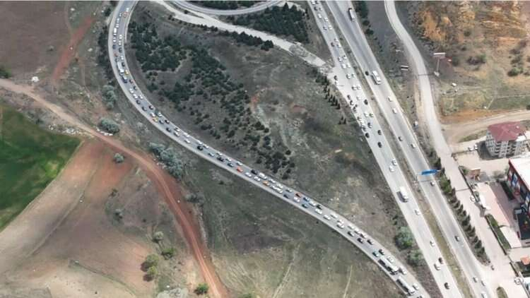 Ulaşımda 43 ilin geçiş güzergahı "kilit kavşak" Kırıkkale'de, Ramazan Bayramı tatili yoğunluğu dolayısıyla helikopter destekli trafik denetimi gerçekleştirildi.