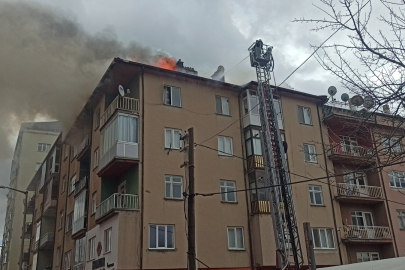 Konya'da 5 katlı binanın çatısında yangın paniği