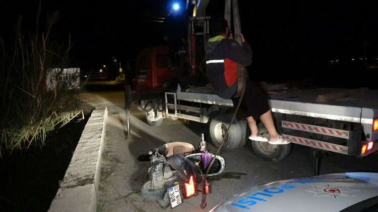 Antalya’nın Manavgat ilçesinde kanala uçarak yaralanan motosiklet sürücüsünün 1,93 promil alkollü olduğu belirlenirken, kanaldaki motosiklet vincin halatına oturan görevli tarafından halata bağlanarak kanaldan çıkarıldı.
