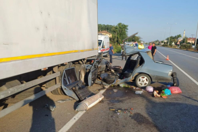Samsun'da yoldan çıkıp park halindeki kamyona çarpan Tofaş marka otomobil parçalanırken, kazada 1 kişi hayatını kaybetti, 3 kişi ağır yaralandı.