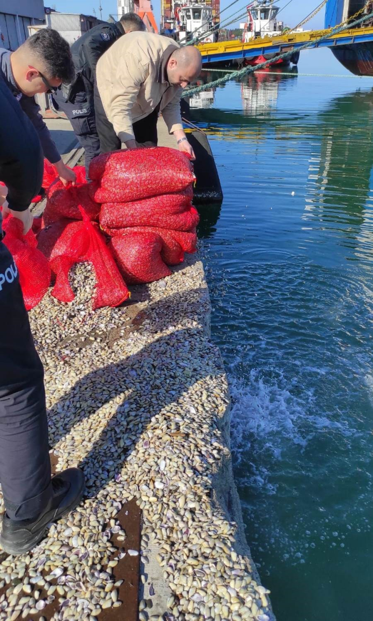 İki ayrı baskında, Çanakkale’ye sevk edilmek üzere hazırlanan yaklaşık 3 ton beyaz kum midyesi (Donax trunculus) ele geçirildi. Yapılan incelemelerde, bu tür yasa dışı avcılığın Samsun’da ilk kez gerçekleştirildiği tespit edildi.