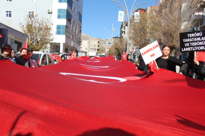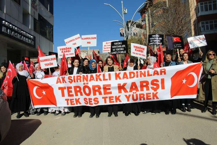 Pençe-Kilit Harekatı bölgesinde bölücü terör örgütü PKK ile girilen çatışma sonucu 12 şehit verilmesi üzerine, Şırnaklı kadınlar ve çocuklar, terörü kınayıp 200 metrelik Türk bayrağıyla yürüyüş yapıp tepki gösterdi.