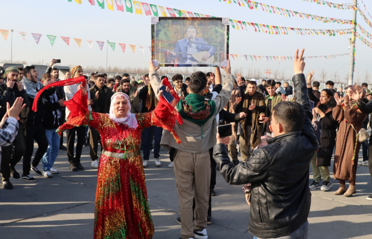Nevruz alanına, “Jin, jiyan, azadî” ile “Nevruza azadiyê pîroz bê / Özgürlük Nevruzu kutlu olsun” yazılı pankartlar asıldı. Ayrıca etkinlik alanının iki yanına büyük LED ekranlar kuruldu.