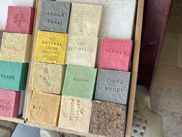 Sabunlar hakkında bilgi veren Mehmet Bey, özellikle bıttım ve menengiç yağından üretilen sabunların ilgi gördüğünü belirterek şunları söyledi: “Yabani fıstık olan bıttım ve menengiç yağından yapılan bir sabun çeşididir. Saç köklerini besler, kepeği, yağlanmayı önleyip kuru saçları nemlendirir. Antiseptik özelliğinden dolayı saç diplerindeki yara ve tahrişleri tedavi edici özelliği vardır. Hassas ciltlerin eski yumuşaklığına ve esnekliğine kavuşmasına yardım ederek cilde rahatlık hissi verir. Argan yağının yaşlanmayı geciktirici özelliği sayesinde cildi nemlendirir ve besler. Cilt kuruluğuna karşı savaşır. Saçları hızlı biçimde nemlendirir ve güzelleştirir.”