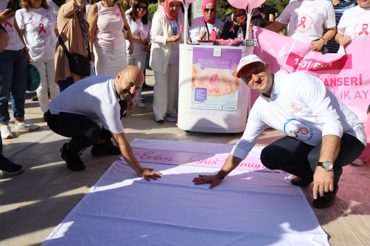 Yürüyüş etkinliğinin sona erdiği Atatürk Parkı alında "Erken Teşhis Elimizde" temasıyla düzenlenen El Baskısı etkinliği ile erken teşhis için 20 yaşından itibaren ayda bir kendi kendine meme muayenesi ve 40-69 yaş arası kadınlarda iki yılda bir mamografi çektirmenin önemi vurgulandı. Vali Yardımcımız Hasan Balcı ve İl Sağlık Müdürü Uzm. Dr. Halil Nacar’ ın başlattığı El Baskısı etkinliğine sağlık çalışanları ve vatandaşlar ilgi gösterdi.