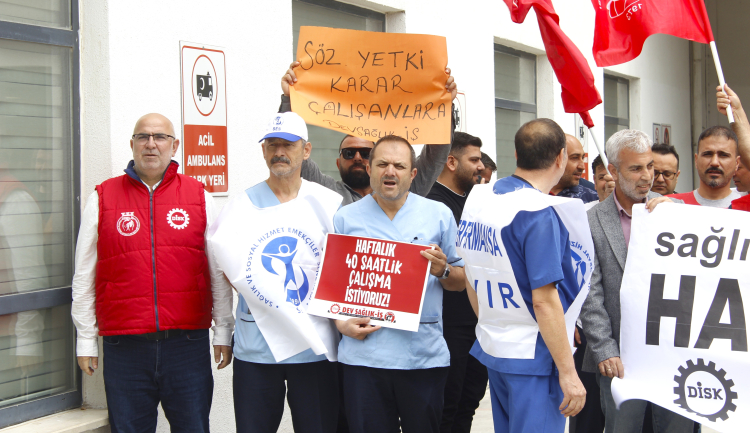 Hüseyin Türkmen, Türkiye genelindeki sağlık ve sosyal hizmet emekçilerinin temizliğini duyurmak için bölgelerde daha fazla ifade ederek, “Bugün burada DİSK olarak, Dev Sağlık İş olarak sadece sağlık ve sosyal hizmet işçileri için değil gözü kulağı Kapalı kapılar ardındaki toplantıda temsil edilmeyen bütün kamu işçileri için bir araya geldik. Temmuz ayında sendikamız bakım barajı altında bırakılmasaydı bugün masada Türkiye'nin yerinde sağlık ve sosyal hizmet çalışmalarında gerçek sıkıntılar ve kırılmalar konuşulacak. Bugün işyerlerimizde gerçek taleplerimizi dile getirmiyoruz” dedi.