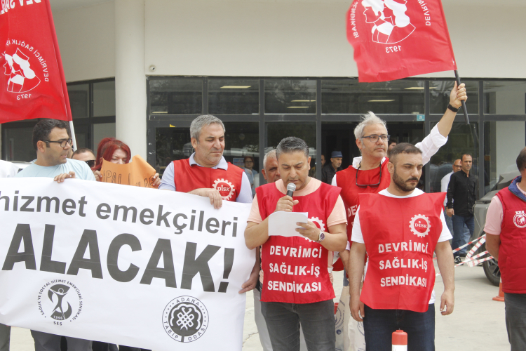 Adana'da Balcalı Hastanesi önünde sağlık ve sosyal hizmet emekçileri, çalışma koşullarının ayrılabilir ve ayrılabilirn karşılanması için basın açıklaması yaptı. Açıklamaya DİSK Adana şubeleri, Adana Tabip Odası, SES Adana şubesine bağlı sağlık çalışanları katıldı. Basın açıklamasını Dev Sağlık İş Çukurova Bölge Şube Başkanı Hüseyin Türkmen okudu. Türkmen, “Bugün Türkiye'nin dört bir yanındaki hastanelerden sağlık ve sosyal hizmet emekçilerinin sesi yükseliyor” dedi.