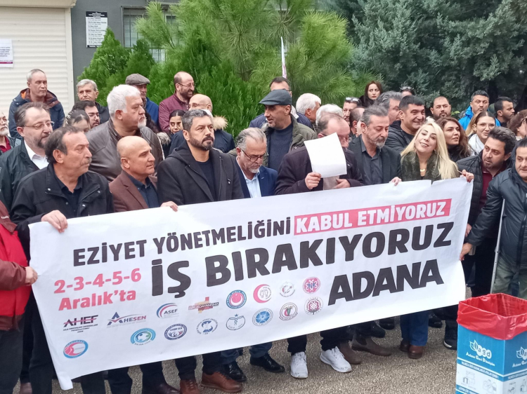 Adana’da aile hekimleri, ‘Aile Hekimliği Yönetmeliği’ne karşı başlattıkları iş bırakma eylemlerini sürdürüyorlar. Sağlık ve Sosyal Hizmet Emekçileri Sendikası (SES) Adana Şubesi ile Türkiye Aile Hekimleri Uzmanlık Derneği (TAHUD) Adana Şubesi yetkilileri, yeni yönetmeliğin geri çekilmesi ve toplum sağlığını öncelikleyen bir düzenleme talep ediyorlar.