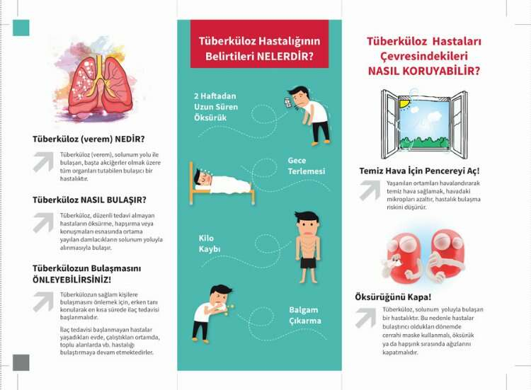 Yapılan paylaşımda şu ifadeler yer aldı, "Tüberküloz 1 haftadan uzun süren öksürük, gece terlemesi, iştahsızlık ve kilo kaybıyla kendini gösterir ve düzenli ilaç kullanımıyla tedavi edilebilir. Eğer bu belirtileri taşıyorsanız, Hastanemiz Göğüs Hastalıkları Polikliniğine başvurabilirsiniz."