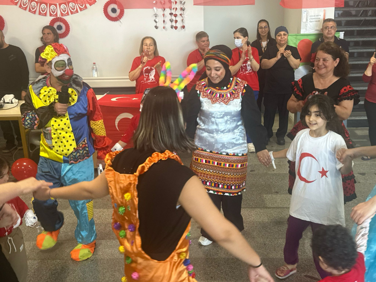 Çukurova Üniversitesi Balcalı Hastanesi’nde tedavi gören çocuklar, 23 Nisan Ulusal Egemenlik ve Çocuk Bayramı’nı şarkılar, hediyeler ve palyaçolar eşliğinde coşkuyla kutladı. Gönüllüler Derneği ve hastane yönetiminin iş birliğiyle düzenlenen etkinlikte minik yürekler neşeyle doldu.