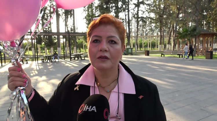 Hatay’da meme kanserini yenmeyi başaran 55 yaşındaki Hatice Eryaşar, farkındalık yaratmak için kadınlarla birlikte gökyüzüne pembe balonlar bıraktı.