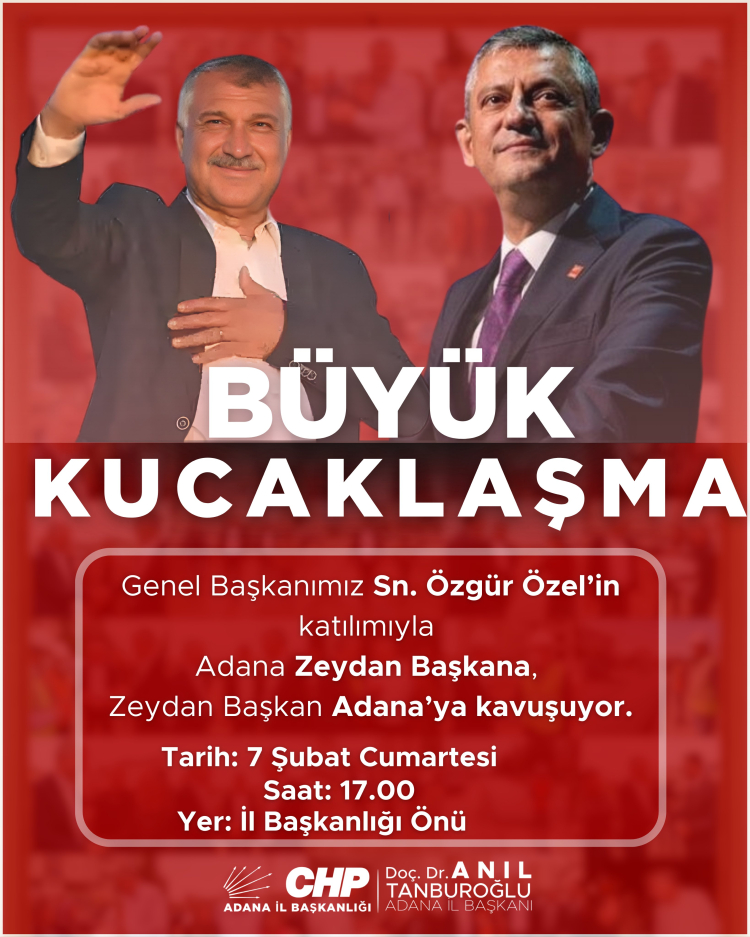 Adana Büyükşehir Belediye Başkanı Zeydan Karalar, burada binlerce hemşehrisiyle bir araya gelecek. Parti yetkilileri, tüm Adanalıları Türk bayraklarıyla birlikte İl Başkanlığı önüne davet ederek, “Yerin önemi yok, gönüller bir. Yarın Adana tarih yazacak” mesajını iletti.