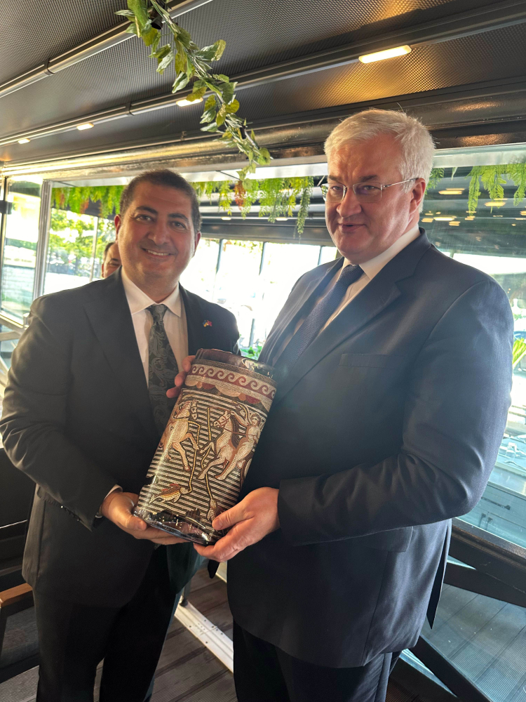 Forumda Ukrayna Dışişleri Bakanı Andrii Sybiha, Türkiye’deki Ukrayna Fahri Konsolosları ile özel bir toplantı gerçekleştirdi. Ukrayna’nın Adana Fahri Konsolosu Ömer Faruk Sakarya'nın da katıldığı bu toplantıda, Ukrayna’daki mevcut durum, Türkiye-Ukrayna arasındaki sosyal, kültürel ve ticari ilişkiler tartışıldı. Ayrıca, fahri konsolosların bölgelerinde yapılabilecek işbirlikleri üzerine de görüşmeler yapıldı. Sybiha, Ukrayna ile ilgili çalışmalarından dolayı Ömer Faruk Sakarya ve oğlu Demir Sakarya'ya hediye takdim etti. Sakarya ise, Bakan Sybiha'ya 2014'te Adana’da bulunan ve binlerce yıllık geçmişe sahip At Üzerinde Balık Avlayan Eros Mozaiği'nin yer aldığı vazo hediye etti. Bu vazonun, Sakarya’nın "Marka Kent Adana" hedefiyle özel girişimiyle yaptırıldığı belirtilerek, Ukrayna’daki çalışma ofisinde yer alacağı ifade edildi.
