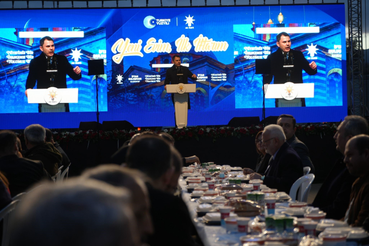 Konuşmasında muhalefete ve CHP Genel Başkanı Özgür Özel'e de yüklenen Bakan Kurum, "Biz Antep’in sokaklarındaydık, masa başında konuşmadık, bu hayatın içine girdik. Bu bölgede yaşadık. Şu Nurdağı şahittir ki enkaz başında bekleyen babaların sessizliğini de gördük, iftar sofrasını paylaşan annelerin vakarını da gördük. Günlerimizi gecelerimize kattık. Bir vatandaşımız kapısını bir saat erken açsın diye şantiyelerde sabahladık. Şimdi bakıyorum. Burada kusur bulamayınca masal anlatıyorlar. Gerçeği söyleyemeyince dedikodu üretiyorlar. Her gittikleri yerde yaptığımız 455 bin konutu konuşuyorlar. Niye konuşuyorlar biliyor musunuz? Çünkü depremden bu yana felaket üzerinden siyaset kurdular. Çünkü bu bölgenin toparlanması, depremzede kardeşlerimizin yuvasına kavuşması işlerine gelmiyor. Şimdi o zemin ayaklarının altından kayıyor. Rahatsızlar ama şunu herkes bilsin. Biz laf üstüne laf değil, taş üstüne taş koyduk. Biz söz söylemedik, şehirlerimizi ihya etmek için canla başla çalıştık. Ve açık söylüyorum, siz bu yaptıklarımızın ne aynısını yapabilirsiniz, ne de bu aziz milletimizin önüne koyacak bir hayalini, maketini, demosunu gösterebilirsiniz. Hep söylediğimiz gibi, biz buraya yolu düşenlerden değiliz. Biz bu şehrin acısında da vardık, sevincinde de vardık. Allah ömür verdikçe de burada olmaya devam edeceğiz. Liderimiz, Cumhurbaşkanımız ile daha nice seneler hizmete devam edeceğiz. Rabbim, birliğimizi, beraberliğimizi muhafaza etsin; Ramazan’a ulaştırdığı gibi, bayrama da ulaştırsın diyor, hepinizi Allah'a emanet ediyorum" diye konuştu.