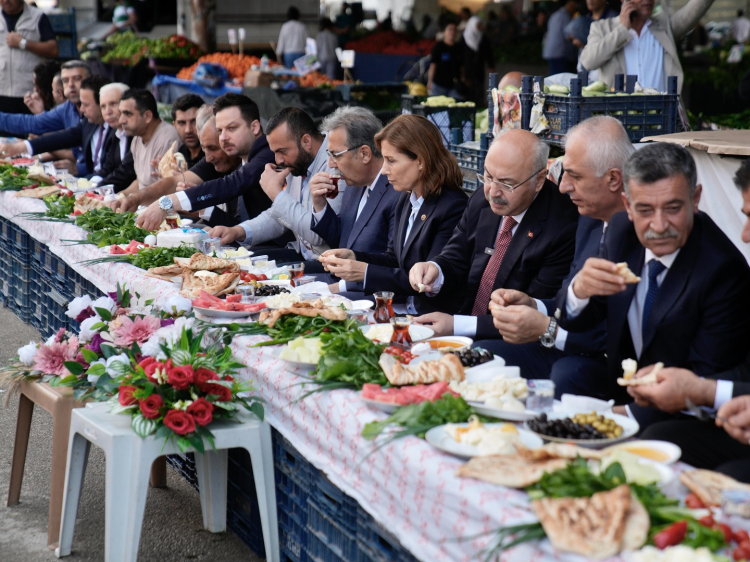 Başkan Tekin, “Şehrimizin bereketi, sabahın erken saatlerinde tezgâh başında alın teri döken emekçi ellerdedir. Üreten, paylaşan ve hayatı güzelleştiren esnafımız, bizim en büyük gücümüzdür. Seyhan’da her zaman emeğin ve üretimin yanında olmaya devam edeceğiz. Seyhan’ı emeğin ve üretimin ışığında büyütmek için var gücümüzle çalışıyoruz. Alın terinin olduğu her yerde biz de olacağız” şeklinde konuştu.