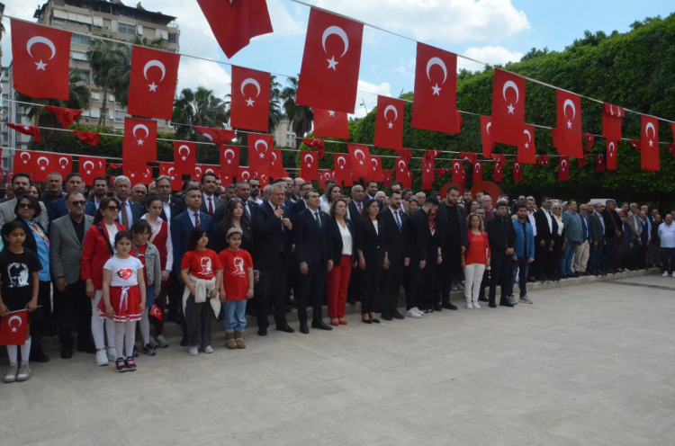 Cumhuriyet Halk Partisi (CHP) Adana İl Başkanlığı, 23 Nisan Ulusal Egemenlik ve Çocuk Bayramı dolayısıyla Atatürk Parkı’nda tören düzenledi. Törende Atatürk Anıtı’na çelenk sunumu CHP Adana İl Başkanı Anıl Tanburoğlu, İl Kadın Kolları Başkanı Özgürtan Çığ ve Gençlik Kolları Başkanı Ahmet Tanık tarafından gerçekleştirildi. Çelenk sunumunun ardından saygı duruşunda bulunuldu ve İstiklal Marşı okundu. Programa Adana Büyükşehir Belediye Başkan Vekili Güngör Geçer, CHP Adana Milletvekilleri, belediye başkanları, meclis üyeleri, partililer ve eğitim sendikaları katıldı.