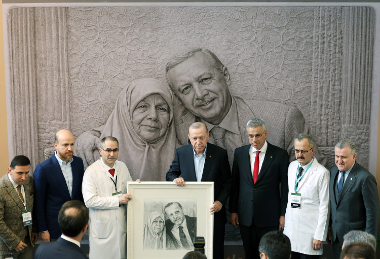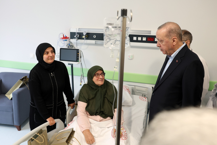 "Biz millete ve memleketimize hizmet için varız" diyen Erdoğan, "Biz bu yola kendimizi adadık derken asla hamaset yapmıyoruz. Başkaları kendilerini çıkarlarına ve ikballerine adamış olabilir. Başkalarının önceliği kariyerleri, siyasi hırsları, koltukları olabilir ama bizim önceliğimiz insandır, insanımızın sağlığıdır. Bizim gayemiz insanımızın ekmeğini ve umutlarını büyütmektir. Her işin başı sağlıktır diyerek 2002'den beri ülkemizin sağlık altyapısını güçlendirmek için gece gündüz çalışıyoruz. Sağlık sistemimizi çağın gereklerine, ülkemizin gerçeklerine ve vatandaşlarımızın beklentilerine cevap verir hale getirdik. Böylece bir dönem ülkemizin en zayıf halkası olarak görülen sağlık hizmetlerini dünyada örnek alınan bir seviyeye yükselttik. Bugün dünyanın çeşitli ülkelerinden uzmanlar geliyor. Başta şehir hastanelerimiz olmak üzere bizim sağlık sistemimizi inceliyor. Türkiye sağlık noktasında kendi vatandaşları ile birlikte her yıl yüzbinlerce yabancıya sağlık hizmeti veriyor. Bakın Covid-19 salgını başladığında neler yaşandığını hep birlikte gördük. Güçlü sağlık altyapımız sayesinde korona virüs salgınını dünyada en rahat ve en az kayıpla atlatan ülkelerden biri olduk. Bize gelişmiş diye örnek gösterilen ülkelerde yaşanan sahnelerin hiçbiri Türkiye'de yaşanmadı. Avrupa'dan Amerika'sına insanların çok ciddi paralar ödemek zorunda kaldığı hizmetleri biz vatandaşımıza tamamen ücretsiz sunduk. 53 binden fazla canımızı toprağa verdiğimiz 6 Şubat depremlerinden aynı şekilde alnımızın akıyla çıktık. Dünyada bir başka ülkenin altından kolayca kalkamayacağı ağır bir yükü hamdolsun omuzlamayı başardık" ifadelerini kullandı.