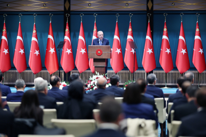 Doğu Kudüs ve Batı Şeria gibi Gazze’nin de Filistin halkının olduğunun altını çizen Cumhurbaşkanı Erdoğan, "Gazzeli kardeşlerimiz, doğdukları topraklarda ilelebet yaşamaya inşallah devam edecektir.Filistin halkı; teslim olmayacağını, vatanlarını terk etmeyeceğini, zalime hiçbir şekilde boyun eğmeyeceğini, tüm imkansızlıklara, tüm barbarlıklara rağmen defalarca göstermiştir. 18 aydır Gazze, son yüzyılın en acımasız katliamlarının yanı sıra, tüm insanlığın yüz akı olacak destansı bir direnişe de sahne olmaktadır. Daha fazla kan dökerek, daha fazla çocuk öldürerek, insanları aç, susuz, ilaçsız bırakarak varılabilecek hiçbir yer olmadığı artık görülmelidir. Herkes aklını başına toplamalı ve bölgemizin istikrarı için açılan fırsat pencerelerini hoyratça heba etmemelidir. Biz bunu istiyoruz, bunun için mücadele ediyoruz. Ne söylüyorsak da bölgemizdeki tüm halkların huzuru, güvenliği ve barış içinde bir arada yaşaması için söylüyoruz. İnşallah bundan sonra da barış ve istikrar için çalışmayı sürdüreceğiz" ifadelerini kullandı.