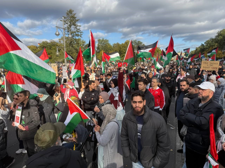 Almanya’nın başkenti Berlin’de yaklaşık 16 bin kişi ‘Gazze için Birlik' çağrısıyla yapılan gösteride Filistin için özgürlük ve adalet talebiyle gösteri düzenledi.