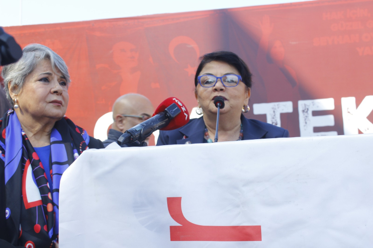 KADER Adana Şube Başkanı Halime Ünal, Oya Tekin’in kaleme aldığı mektubu okudu. Ünal, adaletin devletin temel unsurlarından biri olduğunu vurgulayarak, “Yaşamını hak arama mücadelesi içinde geçirmiş bir Türkiye Cumhuriyeti vatandaşı olarak adaletin bir erdem olduğu gibi aynı zamanda devletin temeli olduğunu düşünüyorum. Adalet, su ve ekmek gibi herkes için gereklidir. Seyhan’ın ilk seçilmiş kadın belediye başkanı olan Oya Tekin için haftalardır aynı kararlılıkla bir aradayız. Talebimiz nettir: Oya Tekin’e özgürlük istiyoruz” şeklinde konuştu.