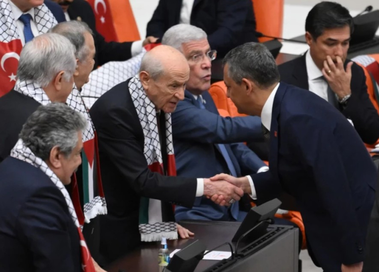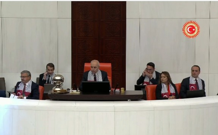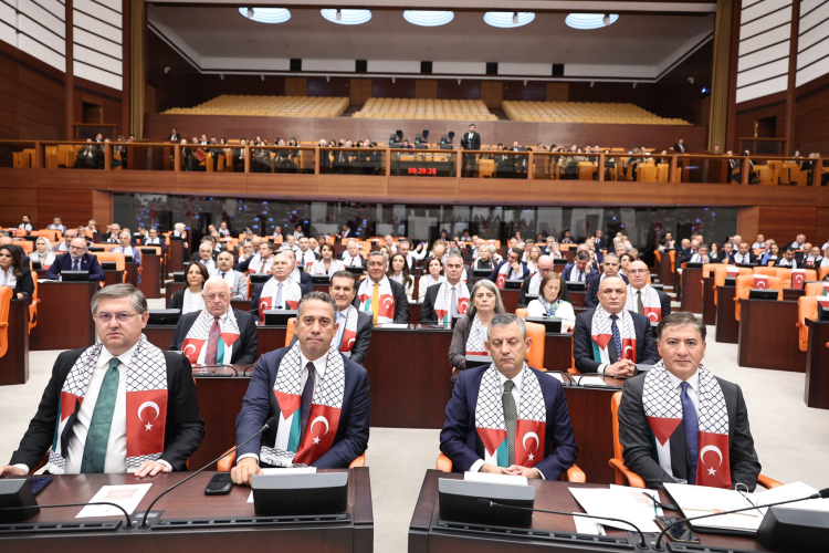 TBMM Başkanı Numan Kurtulmuş’un çağrısıyla toplanan TBMM Genel Kurulu’nda İsrail’in Gazze’ye yönelik saldırıları ele alındı. Milletvekilleri, Filistin’e destek mesajı veren sembolik atkılar taktı.