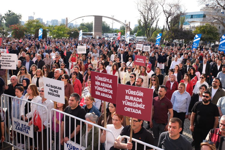 Yüreğir’de 35 yıllık hasreti bitiren Ali Demirçalı’nın belediye başkanı seçildikten sonra bir davaya dahil edildiğini söyleyen CHP Adana İl Başkanı Anıl Tanburoğlu şunları söyledi: “Sonra ne oldu? Birisi çağırdı. Bak elinde dosyam var dedi. O çağırana gitmedi. Mücadele etmeyi seçti. Yıldırım hızıyla ben karar vermek zorundayım diyen bir hakimin yerel mahkeme kararı geldi. Daha gerekçeli karar yazılmadı. Uzaklaştırma geldi. Peki, Ali Demirçalı hangi partinin belediye başkanı? Cumhuriyet Halk Partisi'nin belediye başkanı. Yüreğir belediye başkanını Zeydan karaların karşısına çıkardınız, yüzde 10 fark atıldı. Yüreğir Belediye başkanının mirasıyla Ali Demirçalı’nın karşısına çıkardınız, 35 yıl sonra Yüreğir alındı. Peki, belediye başkanımıza bu cezayı neden bu kadar hızlı verdiniz? Biliyoruz değil mi? Bir iştah var iştah. Sanki bir şey olacak. O iştahınız kursağınızda kalır söylüyorum. Ben Ali Demirçalı'ın söylediği sözlerin altına imza atıyorum, 21 tane meclis üyemiz 21’i de Cumhuriyet Halk Partisi'nin sigortasıdır diyorum. Sizlerle ilk sandıkta hesaplaşacağız ilk sandıkta millet iradesinin hükmünü mazbatalarımızla sizin karşınızda göstereceğiz. Boyun eğmeyeceğiz. Yüreğir’de kazanacağız. Adana'da kazanacağız. Türkiye'de kazanacağız. Biz kazanacağız diyorum.”
