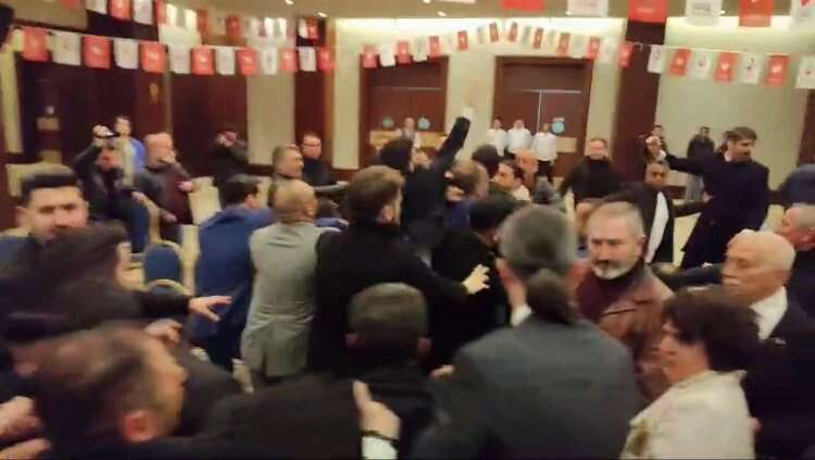 Zafer Partisi Genel Başkanı Ümit Özdağ’ın katılımıyla gerçekleştirilen Kocaeli aday tanıtım toplantısında partiler arasında yumruk ve tekmeli kavga çıktı. Kavgayı bağırarak yatıştıran Ümit Özdağ, “Bir daha partimde böyle bir şey istemiyorum. Terbiyesiz adamlar, Afganlar mı geldi buraya? Suriyeliler mi girdi içeri?” dedi.