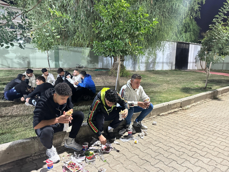 Adana’da amatör futbolcular, imkânsızlıklarla dolu bir sezonda spor aşkından vazgeçmiyor. Belediyelerin sınırlı desteği ve kulüp yöneticilerinin büyük fedakârlıklarıyla sahaya çıkan gençler, kimi zaman antrenmandan sonra moral bulmak için kaldırım ve çimlerin üzerinde kurulan sofrada kebap dürüm yiyor. Adana 1. Amatör Lig Beyaz Grup ekiplerinden Yüreğir Demirspor’un futbolcularının bu sade ama anlamlı “moral yemeği” amatör ruhun ne kadar güçlü olduğunu bir kez daha gösteriyor.