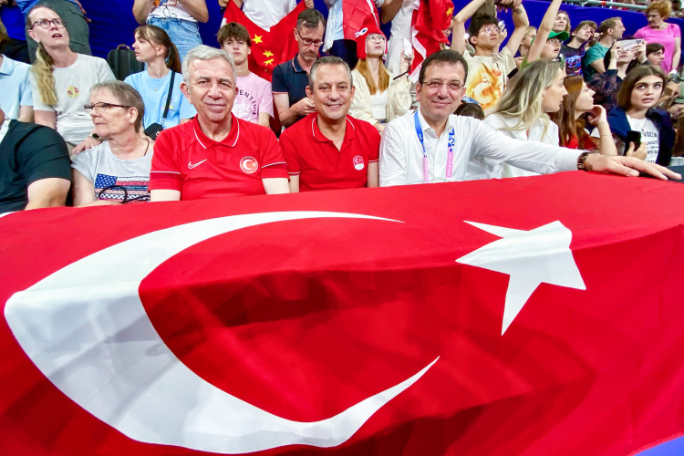Paris'te, organizasyonlarda ilk kez yarı finale yükselerek tarih yazan Filenin Sultanları'nın sevincine Cumhuriyet Halk Partisi (CHP) Genel Başkanı Özgür Özel, İstanbul Büyükşehir Belediye Başkanı Ekrem İmamoğlu ve Ankara Büyükşehir Belediye Başkanı Mansur Yavaş da ortak oldu. Karşılaşmayı İstanbul Büyükşehir Belediye Başkanı Ekrem İmamoğlu’nun eşi Dilek Kaya İmamoğlu da izledi.