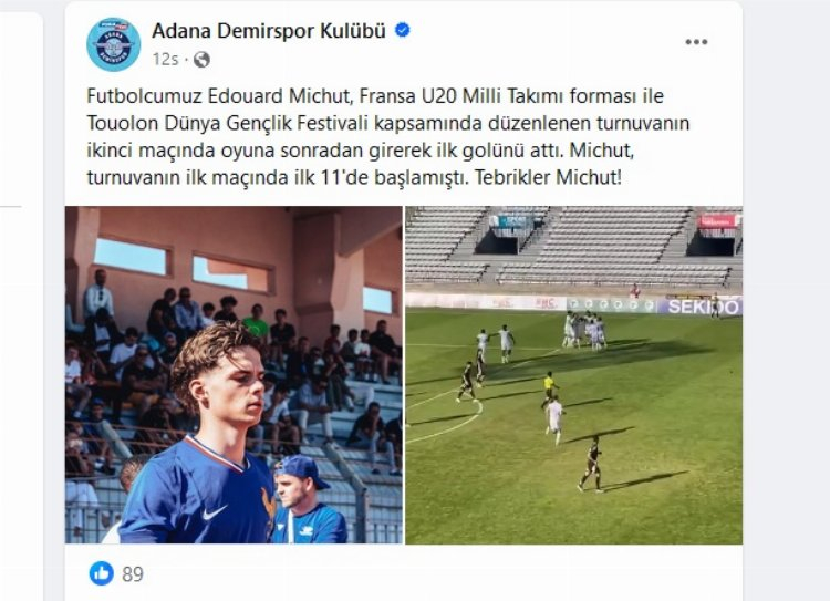 TFF Trendyol Süper Lig takımlarından Yukatel Adana Demirspor'un genç yeteneği Edouard Michut, Fransa U20 Milli Takımı forması ile Touolon Dünya Gençlik Festivali kapsamında düzenlenen turnuvanın ikinci maçında ilk golünü attı.