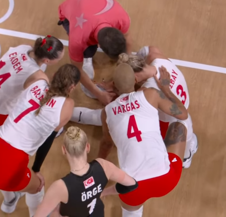 2024 Paris Olimpiyat Oyunları’nda Çin karşısında mücadele eden Türkiye A Milli Kadın Voleybol Takımı, maç sırasında yaşadığı sakatlıklarla dikkat çekti. Cansu Özbay gözyaşları içinde kenara gelirken, Hande Baladın ve Gizem Örge sakatlıklarına rağmen parkede kalmayı başardı. Türkiye, bu özverili performansla yarı finale yükseldi.