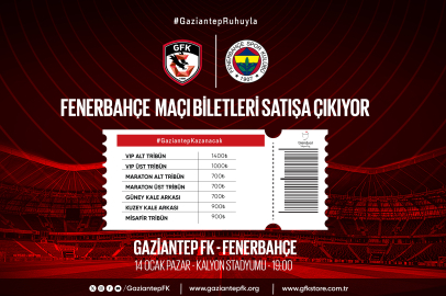 Gaziantep Futbol Kulübü, Trendyol Süper Lig'in 20. haftasında Fenerbahçe'yi konuk edecek. Gaziantep Kalyon Stadı'nda 14 Ocak Pazar günü saat 19.00'da oynanacak maçın biletleri satışa çıktı. Bilet fiyatları 700 TL ile bin 400 TL arasında değişirken, konuk Fenerbahçe taraftarlarına ayrılan misafir tribün bilet fiyatları ise 900 TL'den satışa sunuldu.