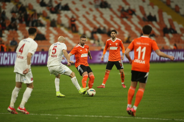 DAK.33: GOL İPTAL! Adanaspor’dan sol kanattan Candeias'la kullandığı kornerde ön direkte Mustafa'nın kafayla uzaklaştırdığı topu ceza alanı dışı, sol çaprazda kontrol eden Mirza Cihan, yayın gerisinden yaklaşık 25 metrelik mesafeden nefis bir vuruşla sol köşeden ağlara gönderdi. Ancak hakem, Mirza'nın şutunda topun kendisine çarparak kaleye gittiğini belirtip golü iptal etti.