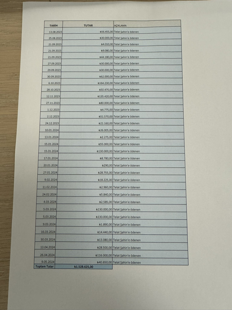Sancak’ın açıkladığı belgelere göre bir taraftar derneği başkanına 13 Ağustos 2023-9 Mayıs 2024 tarihleri arasında 34 farklı tarihte toplam bir milyon 528 bin 625 liralık bir ödeme gerçekleştirildiğine dikkat çekildi.