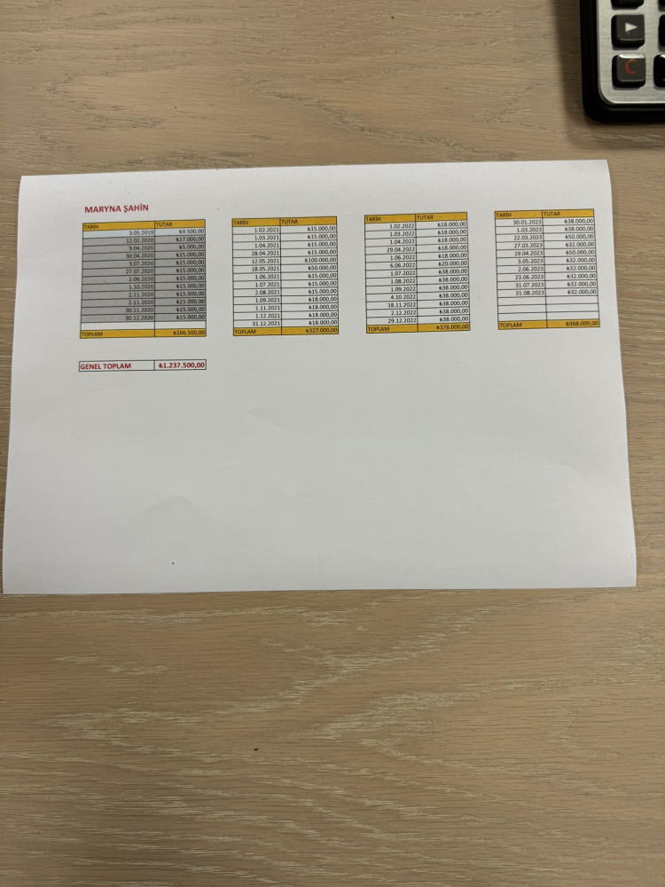 Yine Murat Sancak’ın yaptığı açıklamaya göre; Maryna Şahin’e de 3 Mayıs 2019-31 Ağustos 2023 tarihleri arasında 48 farklı günde toplam bir milyon 237 bin 500 liralık bir ödeme gerçekleştirildiği vurgulandı. Tabloda da; 30 Mart 2023-31 Ağustos 2023 tarihleri arasında toplam bir milyon 246 bin 500 liralık bir ödeme yapıldığı belirtildi.Murat Sancak’ın, sosyal medyada paylaştığı tablolara göre; taraftar liderlerine 4 milyon 12 bin 625 liralık bir ödeme gerçekleştirildiği öne sürüldü. Sancak, tablolar verip ödemelerle ilgili herhangi bir banka dekontu ya da resmi evrak paylaşmadı.