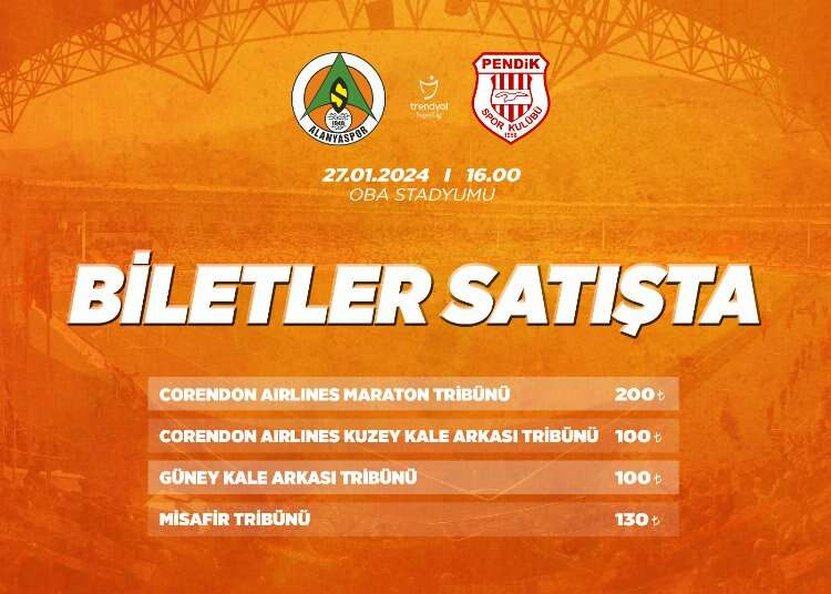 Trendyol Süper Lig'in 23. haftasında Corendon Alanyaspor ile Pendikspor arasında oynanacak maçın biletleri satışa sunuldu.