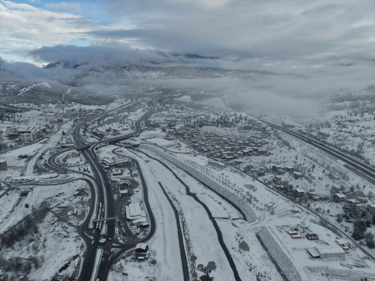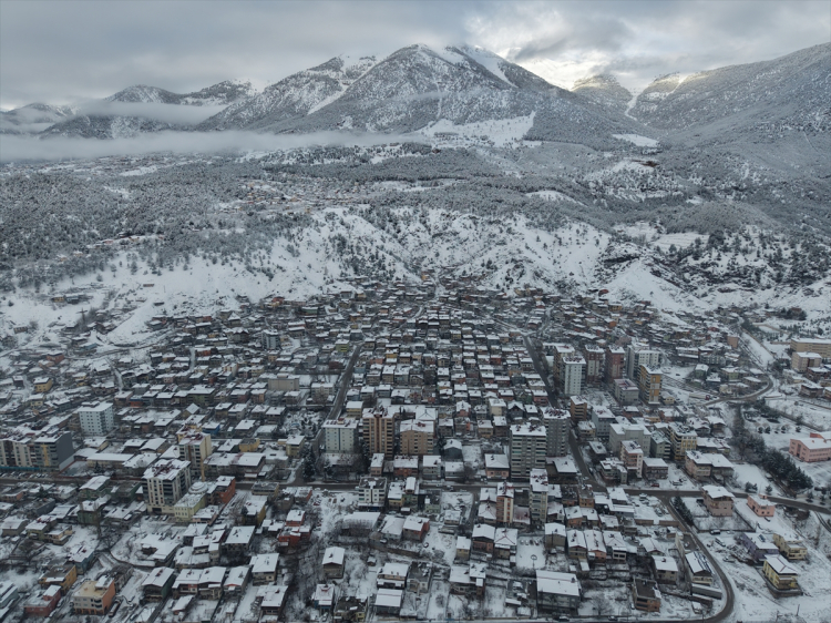 Adana'nın Pozantı ilçesi kar yağışının ardından beyaz örtüyle kaplandı. Kar manzarası dronla görüntülendi.