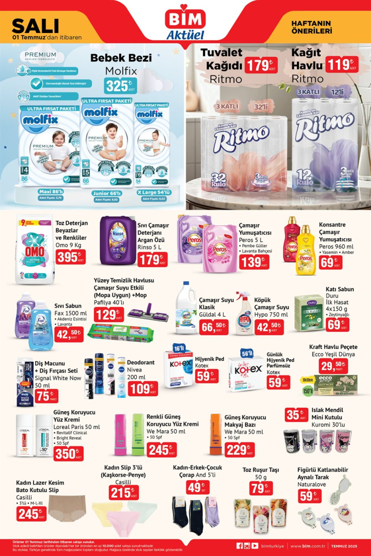 Kampanyalı ürünler, stoklarla sınırlı olup Türkiye genelindeki tüm BİM mağazalarında 1 ve 4 Temmuz tarihlerinde raflarda olacak.