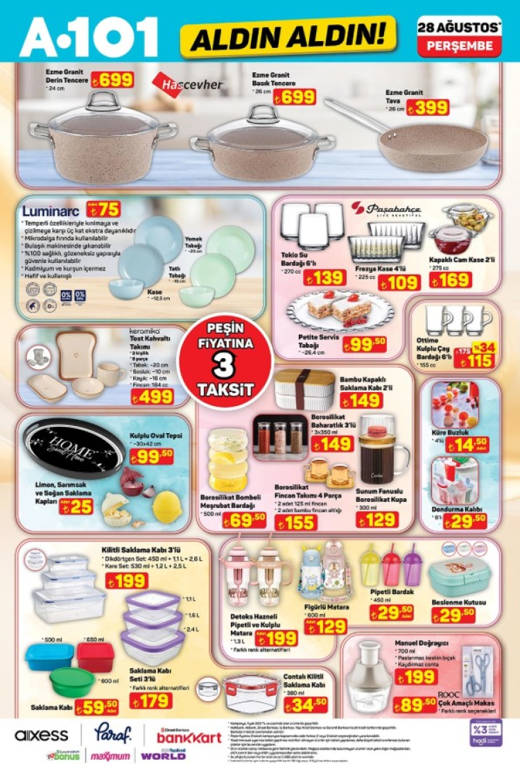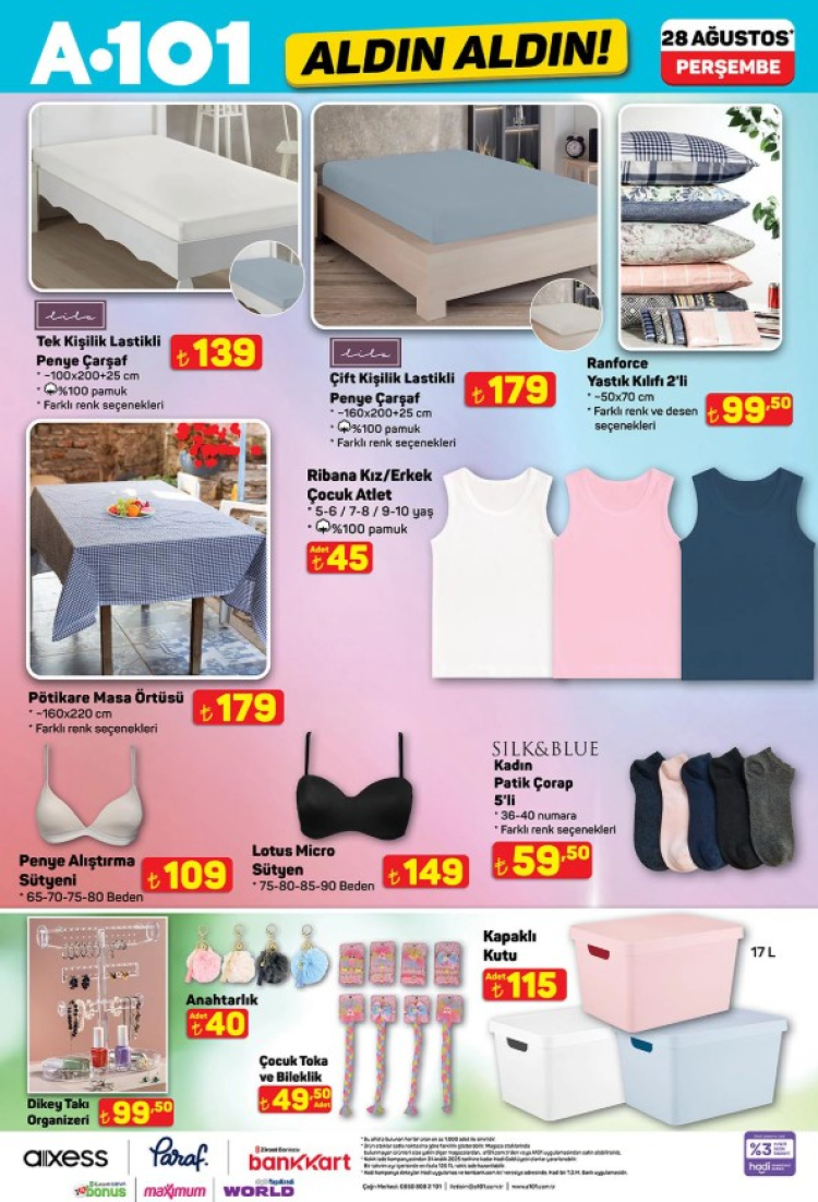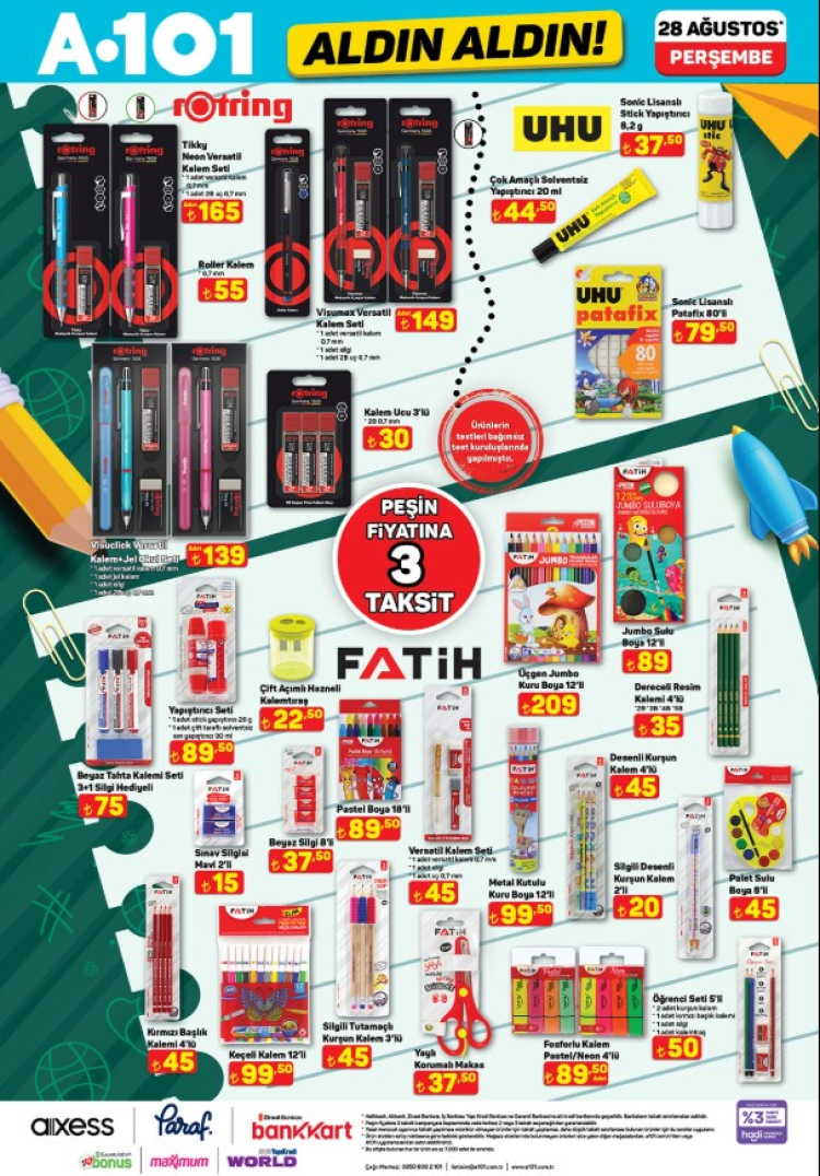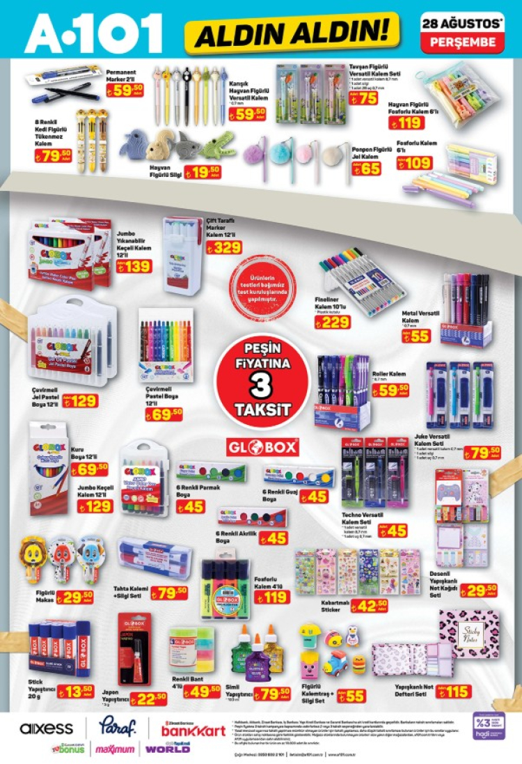 28 Ağustos 2025 Perşembe günü A101 marketlerinde ve online satış platformunda aktüel ürünler raflarda olacak. Kırtasiye malzemeleri ile aktüel ürünlerin aynı gün satışa çıkması, alışverişi kolaylaştıracak.