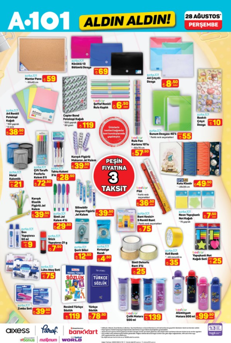 28 Ağustos 2025 A101 aktüel ürünler kataloğu yayında: Kırtasiye ve aktüel ürünler raflarda