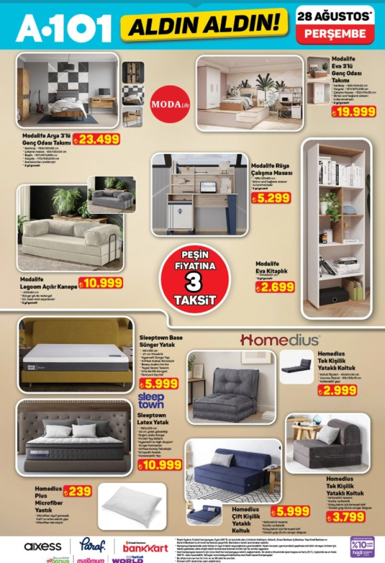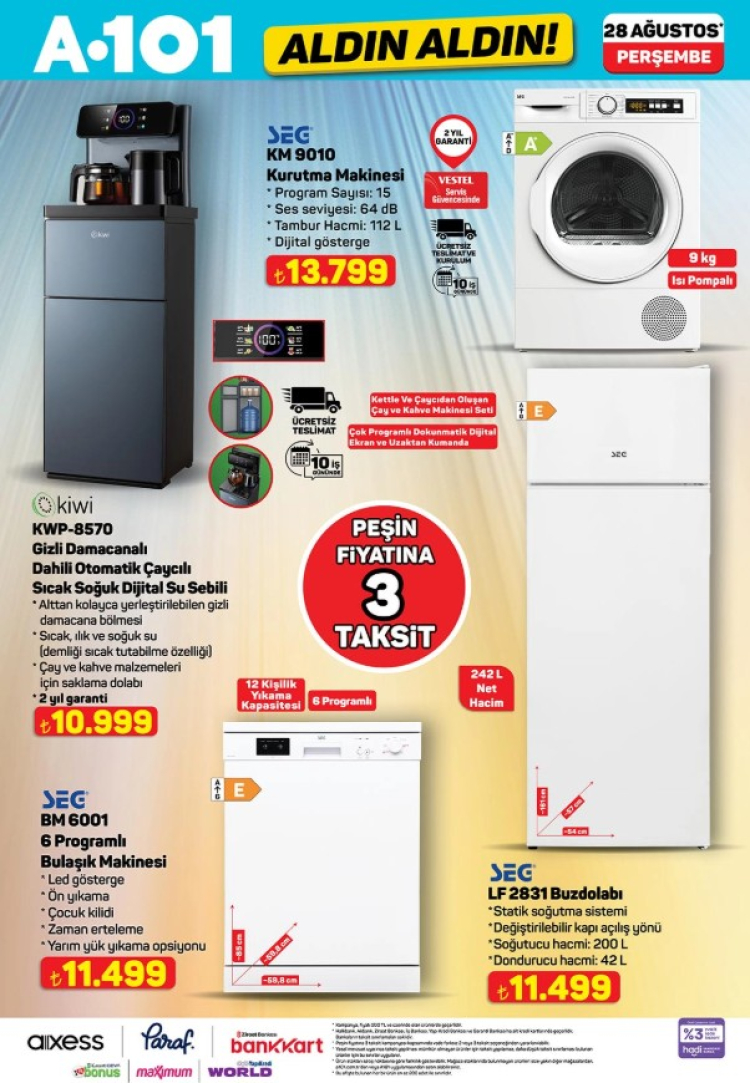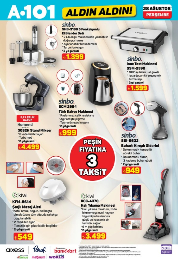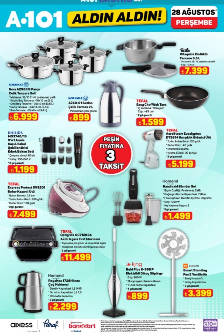 Bunun yanı sıra, A101’in aktüel ürün fırsatları da alışverişseverlerle buluşuyor. Elektronikten ev gereçlerine, mutfak ürünlerinden temizlik malzemelerine kadar pek çok seçenek raflarda yer alacak.