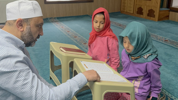 Tokat’ta yaşayan 79 yaşındaki Yavuz Kaya, Kur’an-ı Kerim okumayı öğrenmeleri için torunları 8 yaşındaki Hafsa Sultan Kaya ve 5 yaşındaki Şeyma Kaya’yı her gün Behzat Camii’ne götürüyor. Emekli din görevlisi Kaya, küçük torununu bisikletine oturtuyor, diğer torunuyla birlikte yürüyerek camiye ulaştırıyor. Camide çocuklarını bırakan Kaya, ardından yine bisikletiyle evine dönüyor.