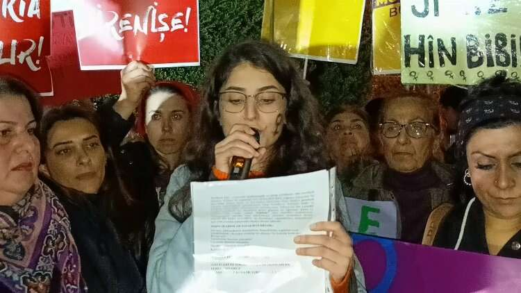 “Şubat ayının son gününde, 24 saat içerisinde 8 kadın öldürüldü. Daha geçtiğimiz günlerde Adana’da İpek Akgül silahlı ateşle vurularak öldürülüp kuyuya gömüldü. Ve dün de Tarsus’ta Merve Gül Bayer’in boşandığı Mustafa Yıldır tarafından öldürüldüğü haberini aldık. Bizler rakamlardan ve isimlerimizden ibaret değiliz. Yaşamak için sokaklardayız. Adliye önlerindeyiz. Mahkeme salonlarındayız. İpek’in ve Merve’nin de sesiyiz. Çünkü biliyoruz hayatlarımıza biz kadınlar sahip çıkabiliriz.”