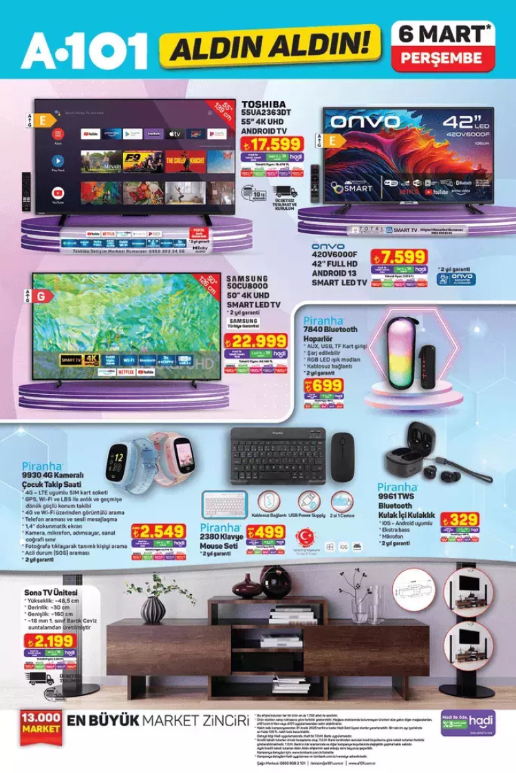 Bu hafta A101, teknolojiseverler için birçok cazip fırsat sunuyor. Özellikle televizyon kategorisinde öne çıkan modellerden bazıları: