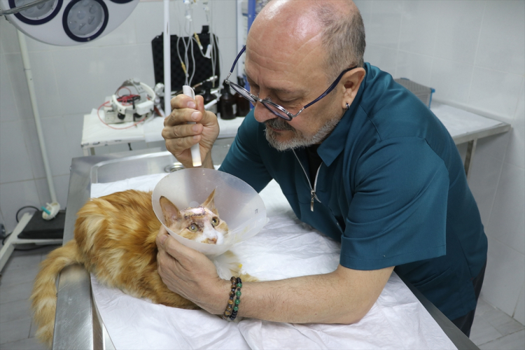 Adana'da Veteriner kafası delik kediyi hayata tutundurdu