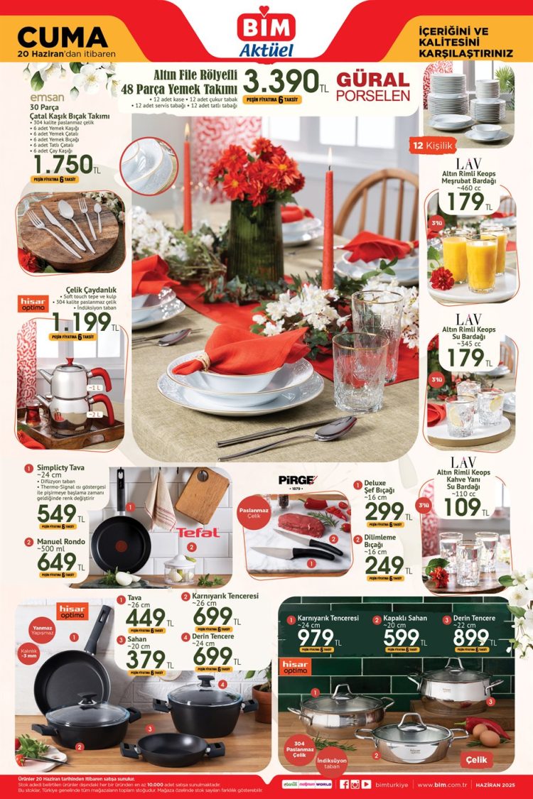 BİM’in 20 Haziran aktüel kataloğunda yer alan ürünler stoklarla sınırlı olacak. Bu nedenle alışveriş yapacak vatandaşların erken saatlerde mağazaları ziyaret etmeleri öneriliyor.